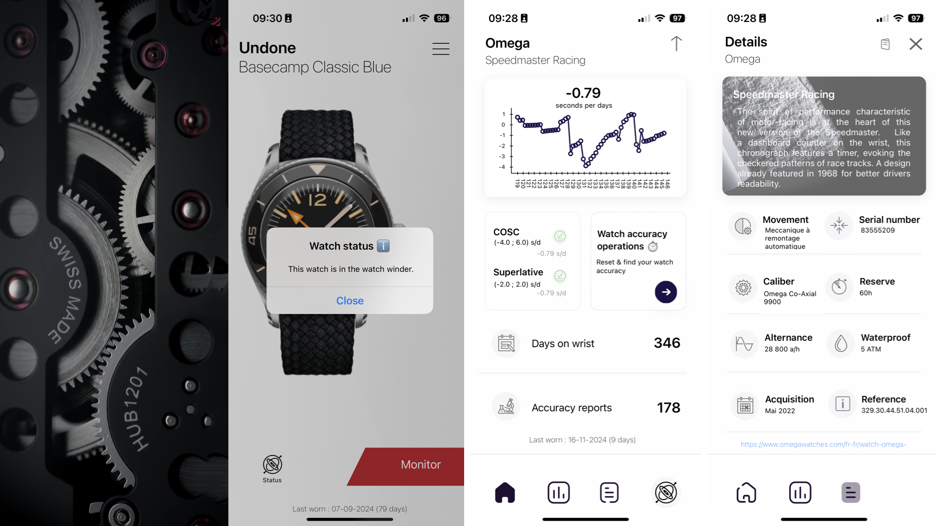 L'avance/retard d'une montre mécanique dépend de sa position au repos. Dans une position, elle a tendance à avancer ; dans une autre, elle retarde. L'application permet de savoir quelle est la meilleure position. Prenez soin de vos garde-temps et suivez leur fonctionnement avec la précision qu’ils méritent. L’outil indispensable pour maîtriser chaque tic et tac de vos montres.